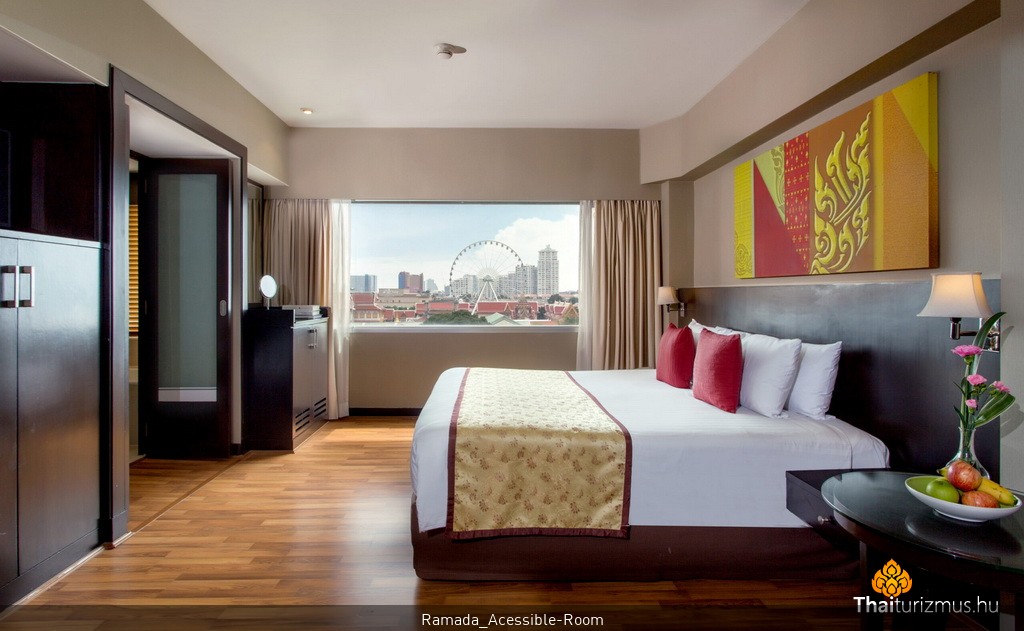 A Ramada Plaza by Wyndham Menam Riverside 525 jól felszerelt szobával és lakosztállyal büszkélkedhet, amelyek mindegyike tágas, elegáns és kényelmes. A modern dekoráció, a minőségi bútorok és a gondosan válogatott kényelmi szolgáltatások, mint a légkondicionálás, ingyenes Wi-Fi, síkképernyős TV és minibár, biztosítják, hogy minden vendég számára kellemes és gondtalan legyen a tartózkodás. A szobák többségéből lenyűgöző kilátás nyílik a folyóra és a városra, így garantáltan felejthetetlen élményben lesz része.