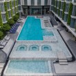 Kültéri egységek : napozó terasz, szabadtéri úszómedence, napozóágyak.