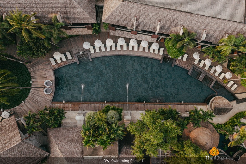 A szálloda közvetlen tengerparti kapcsolattal rendelkezik. A fehér homokos strandon kényelmes nyugágyak várnak, a víz pedig kristálytiszta és kellemesen meleg. Esténként a part átalakul: a naplemente látványa a tenger felett egyszerűen leírhatatlan – tökéletes kulissza egy mezítlábas sétához. A The Dewa egyik legikonikusabb eleme a hatalmas, 600 négyzetméteres, fekete csempés medence. A sötét burkolatnak köszönhetően a víz tükörként veri vissza a pálmafákat és az eget, különleges, misztikus hangulatot árasztva. A medence közepén található bárban (Pool Bar) pedig a vízben ülve kortyolgathatod a kedvenc koktélodat.