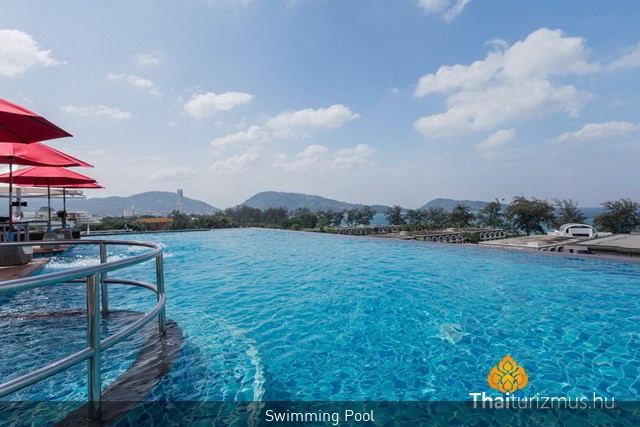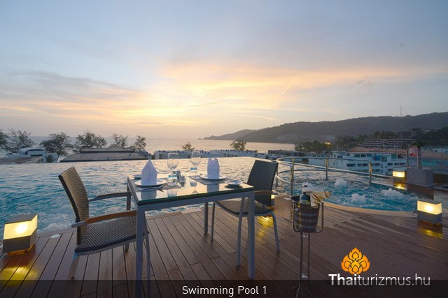 A medencék környéke sosem zsúfolt, így valóban élvezhető a nyugalom Patong nyüzsgése felett.