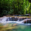 Reggeli után autóval Kanchanaburiba utazunk. Elsőnek a lenyűgöző Erawan Nemzeti Parkban megnézzük a hétemeletnyi magasságból lezúduló vízesést. Sokan úgy tartják, hogy ez Thaiföld legszebb lépcsős zuhataga. Mindegyik alatt természetes medence alakult ki, amely tele van halakkal.A fürdés engedélyezett, a bátrabbak csúszdázhatnak a sziklákon, vagy akár fejest is ugorhatnak a kristálytiszta vizű medencébe.