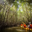 Ebéd után egy dzsungelben tett kenutúra során pihenhet a Sok folyón. A kenuk nagyon stabilak és biztonságosak; mentőmellényt biztosítanak, valamint egy helyi folyami vezetőt, aki a kenut kormányozza. Sodródjon a dzsungel folyóján a Mészkő mellett. Hegyek és egzotikus trópusi növényzettel borított sziklák között. Néha magasan a fejünk felett repülő szarvascsőrű madarakat láthatunk, vagy hüllők sütkéreznek a napfényben a folyóparton. A kenuból megtapasztalhatja az utolsó primér területek némelyikét. Az esőerdő, egy olyan világ, amely évezredek óta alig változott.