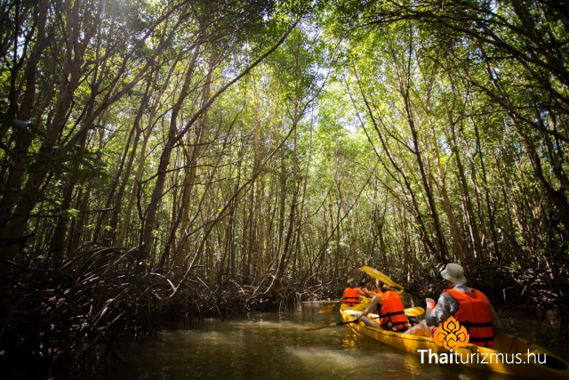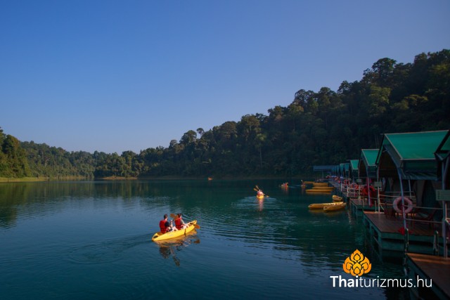 Reggeli után az idegenvezetője meghívja Önt egy vezetett kenu szafarira a kis csatornákba és mellékágakban a Cheow-Larn-tóba. Szálljon be az egyik kajakunkba, és kezdje el fürkészni a fák tetejét lusta szarvasmadarak vagy energikus főemlősök után kutatva. Az esőerdő szívében találja magát egy csendes kalandozáson - szavakkal nem lehet igazságot tenni ennek az élménynek.