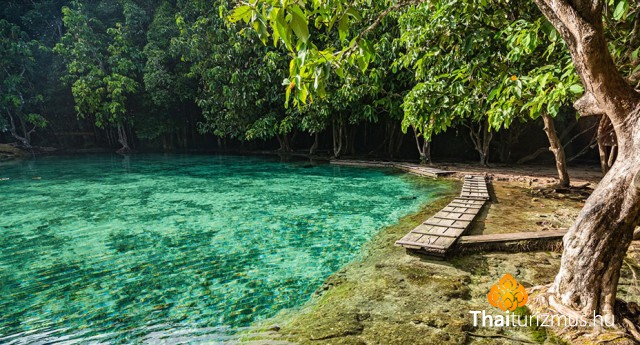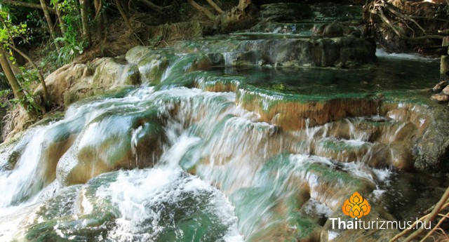 A program első állomása az Aonangtól kb. 45 perces autóútra lévő melegvizes vízesés, melyben meg is mártózhatunk egy rövid időre. Itt a természet által kialakított medencékben közel 35-40 fokos víz található, melyet a vulkanikus kamrák hoznak fel a felszínre. Amikor kiszállunk a meleg vízből, jólesik a közeli hűs vízű folyóban megmártózni. Utána irány a természet, indulunk az Emerald tóhoz, melynek nevét a gyönyörű színe adta. A tó vize nem meleg, ezért kellemes hűsítő élményt nyújt az újabb fürdőzés. A tavat a környékbeli hegyekről csordogáló patakok vize táplálja. Ezután betekintünk a Wat Tham Sua (Tiger Cave) templom meditáló szerzeteseihez. A templom eléréséhez 1237 lépcsőfokot kell megtennünk.
