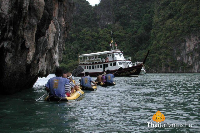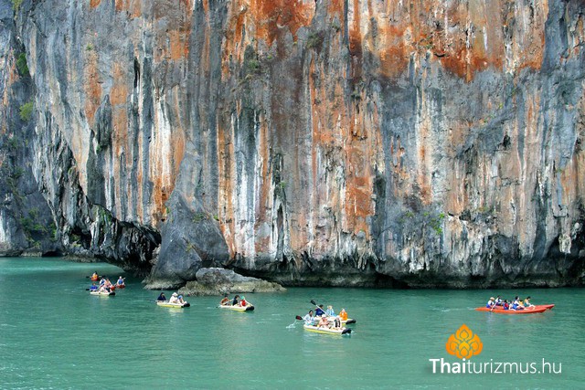 09.30: Indulás az Ao Por kikötõbõl Phang Nga-öböl felé. Megérkezés Phang Nga-öbölbe. Tovább haladva felfedezhetjük kenuinkkal a tengeri barlangokat, csatornákat és a lagúnákat. Kenuzás a Hong-szigeten felé, a James Bond-sziget és Khao Ping Kan meglátogatása.