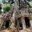 Majd folytatjuk a kirándulást, a Ta Prohm, templomhoz, melyet még elfed a dzsungel. Nagyrészt a 12. század végén és a 13. század elején épült Bayon stílusban, és eredetileg Rajavihara néven. A templomot VII. Jayavarman khmer király alapította, mint az édesanyjának szentelt mahájána buddhista kolostort és oktatási központot. Csaknem 80 000 embernek kellett a templomban élnie vagy azt látogatnia, köztük több mint 2700 tisztviselőnek és 615 táncosnak. A templomot "ragasztó anyag" nélkül építették, és miután elhagyták, a fellazított kövek között fák vertek gyökerek. A romokból kinövő fák és a dzsungeles környezet miatt a környékre látogatók körében az egyik legnépszerűbb templom. Itt forgatták a Tomb Raider című filmet, onnan lehet sokak számára ismerős.